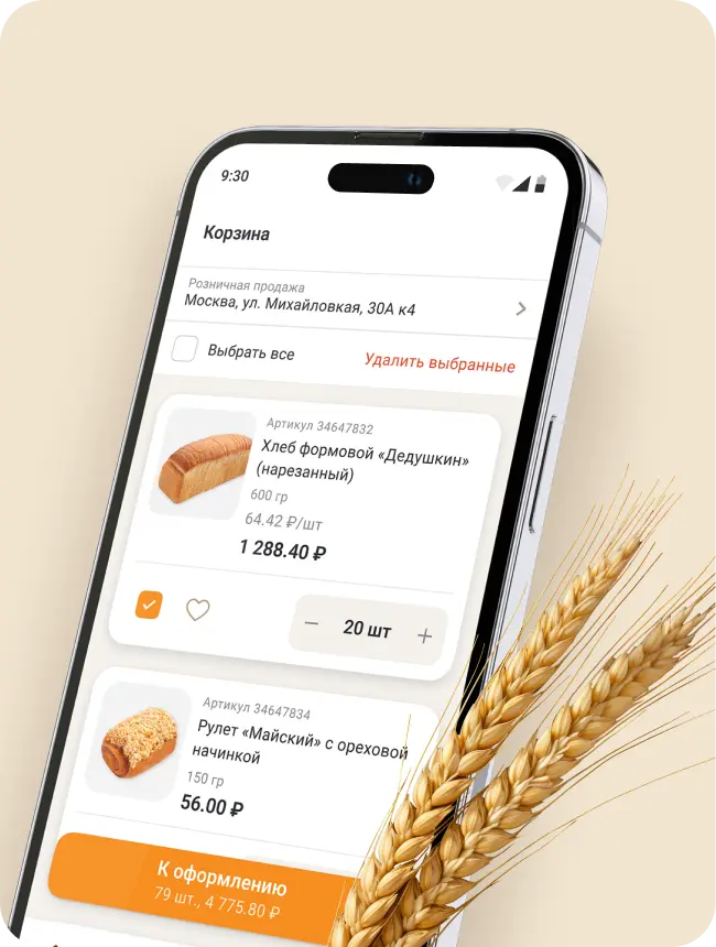 Мы разработали мобильное приложение для хлебозавода, которое предназначено для просмотра каталога хлебобулочных изделий, оформления заказов и отслеживания заказов. Приложение позволяет покупателям получать информацию о товарах и акциях, что улучшает качество обслуживания клиентов и автоматизирует процесс продаж.